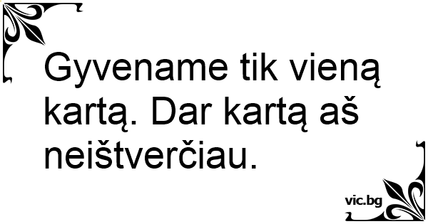 Gyvename tik vieną kartą. Dar kartą aš neištverčiau.