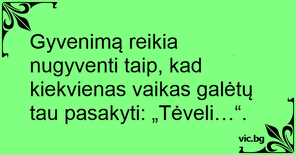Gyvenimą reikia nugyventi taip, kad kiekvienas vaikas galėtų tau pasakyti: „Tėveli…“.