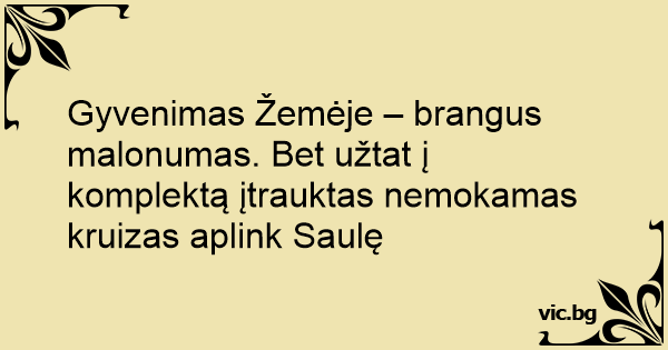Gyvenimas Žemėje – brangus malonumas. Bet užtat į komplektą įtrauktas nemokamas kruizas aplink Saulę
