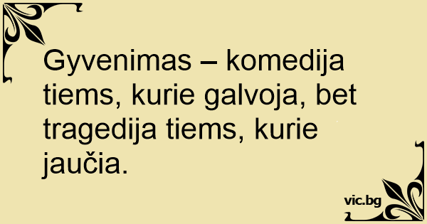 Gyvenimas – komedija tiems, kurie galvoja, bet tragedija tiems, kurie jaučia.