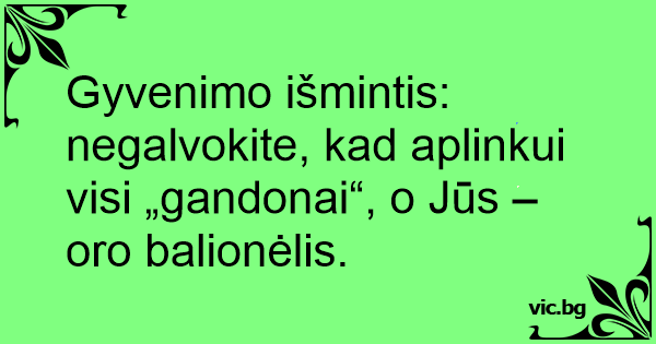 Gyvenimo išmintis: negalvokite, kad aplinkui visi „gandonai“, o Jūs – oro balionėlis.