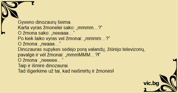 Dinozauras supykes sėdėjo porą valandų, žiūrėjo televizorių, pavalgė ir vėl žmonai: „mmmMMM…?!“