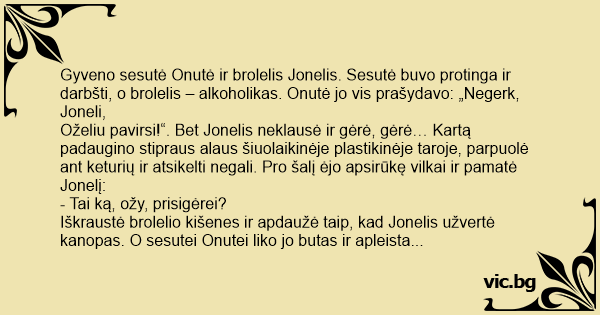 Iškraustė brolelio kišenes ir apdaužė taip, kad Jonelis užvertė kanopas. O sesutei Onutei liko jo butas ir apleista sodyba Kauno rajone prie ežero, nes gėris visada nugali blogį.