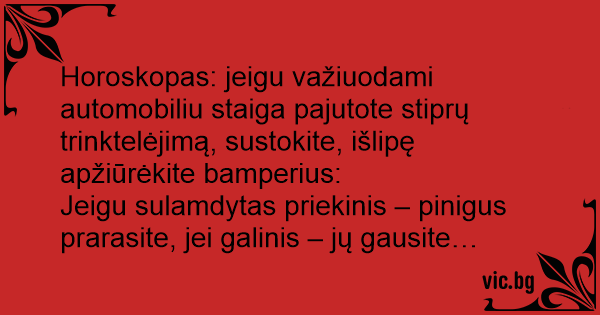 Horoskopas: jeigu važiuodami automobiliu staiga pajutote stiprų trinktelėjimą, sustokite, išlipę apžiūrėkite bamperius: