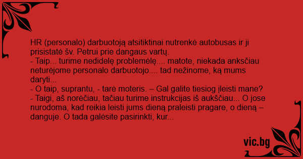 - Deja, mes turime savo taisykles! – nutraukė šv. Petras ir nuvedė ją ant į apačią vedančio eskalatoriaus.