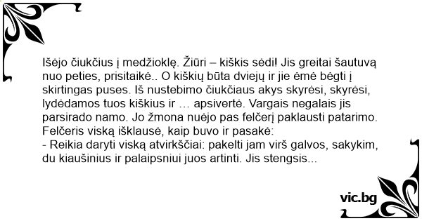 - Aišku, – atsakė žmona, ir, grįžusi namo, ėmėsi gydymo…