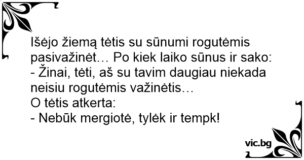 Išėjo žiemą tėtis su sūnumi rogutėmis pasivažinėt… Po kiek laiko sūnus ir sako: