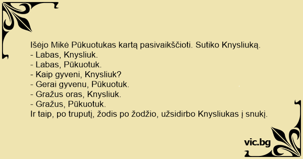 Ir taip, po truputį, žodis po žodžio, užsidirbo Knysliukas į snukį.