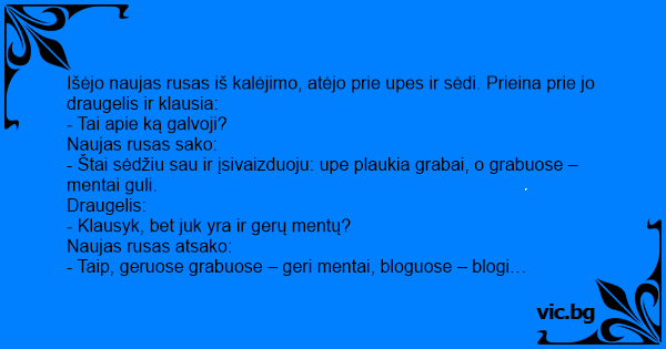 Išėjo naujas rusas iš kalėjimo, atėjo prie upes ir sėdi. Prieina prie jo draugelis ir klausia: