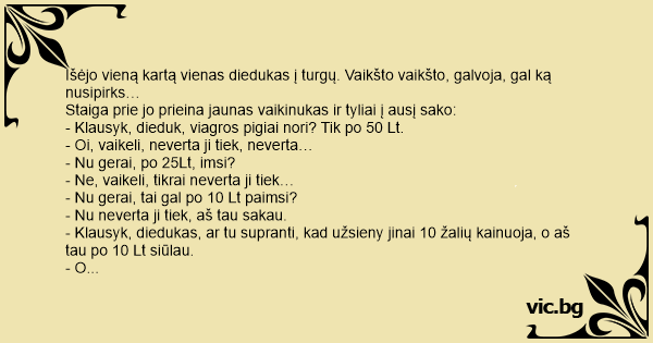 Išėjo vieną kartą vienas diedukas į turgų. Vaikšto vaikšto, galvoja, gal ką nusipirks…