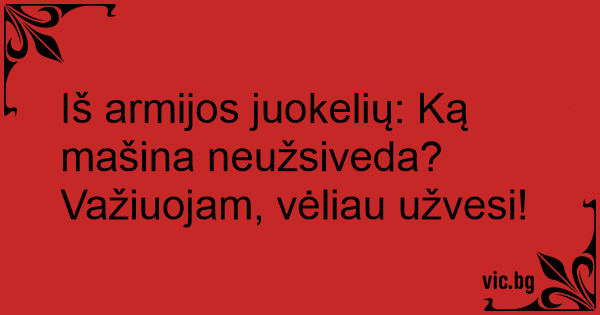 Iš armijos juokelių: Ką mašina neužsiveda? Važiuojam, vėliau užvesi!