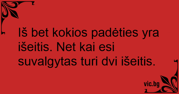 Iš bet kokios padėties yra išeitis. Net kai esi suvalgytas turi dvi išeitis.