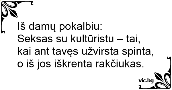 Seksas su kultūristu – tai, kai ant tavęs užvirsta spinta, o iš jos iškrenta rakčiukas.