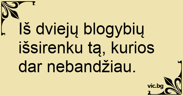 Iš dviejų blogybių išsirenku tą, kurios dar nebandžiau.