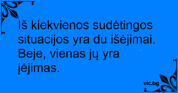 Iš kiekvienos sudėtingos situacijos yra du išėjimai. Beje, vienas jų yra įėjimas.