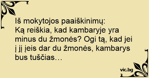 Ką reiškia, kad kambaryje yra minus du žmonės? Ogi tą, kad jei į jį įeis dar du žmonės, kambarys bus tuščias…