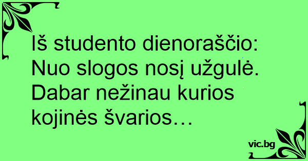 Iš studento dienoraščio: Nuo slogos nosį užgulė. Dabar nežinau kurios kojinės švarios…