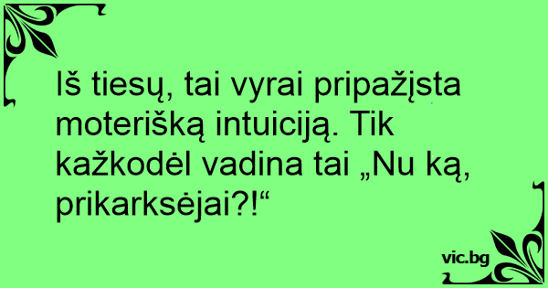 Iš tiesų, tai vyrai pripažįsta moterišką intuiciją. Tik kažkodėl vadina tai „Nu ką, prikarksėjai?!“