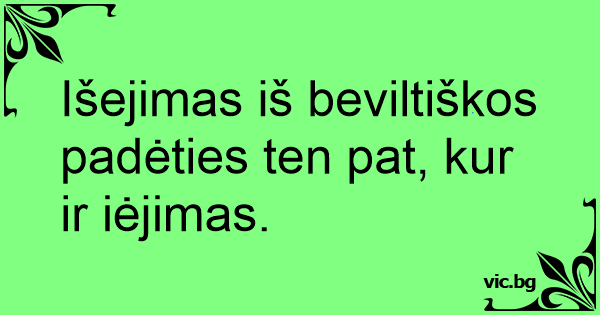 Išejimas iš beviltiškos padėties ten pat, kur ir iėjimas.