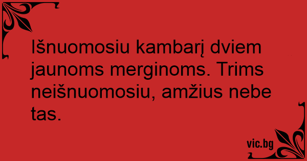 Išnuomosiu kambarį dviem jaunoms merginoms. Trims neišnuomosiu, amžius nebe tas.