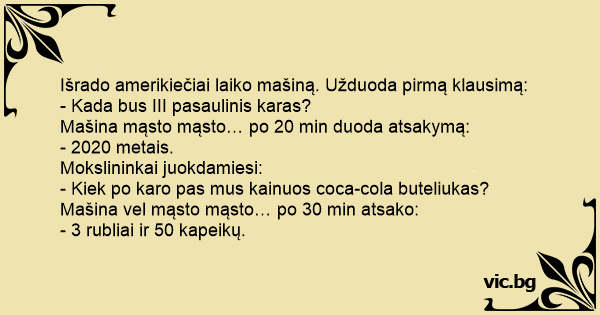 Išrado amerikiečiai laiko mašiną. Užduoda pirmą klausimą: