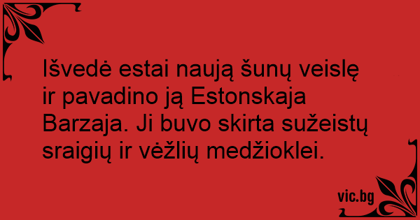 Išvedė estai naują šunų veislę ir pavadino ją Estonskaja Barzaja. Ji buvo skirta sužeistų sraigių ir vėžlių medžioklei.
