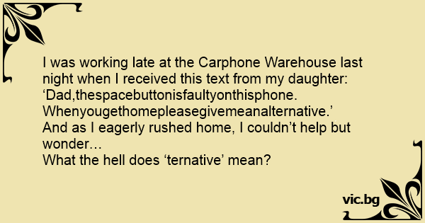 I was working late at the Carphone Warehouse last night when I received this text from my daughter: