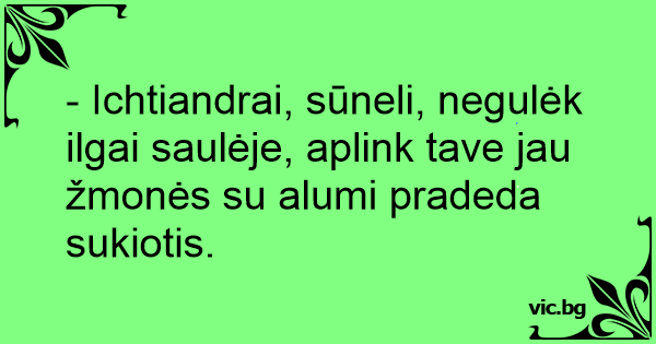 - Ichtiandrai, sūneli, negulėk ilgai saulėje, aplink tave jau žmonės su alumi pradeda sukiotis.