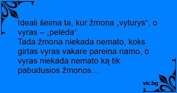 Tada žmona niekada nemato, koks girtas vyras vakare pareina namo, o vyras niekada nemato ką tik pabudusios žmonos…