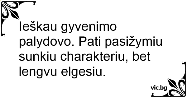 Ieškau gyvenimo palydovo. Pati pasižymiu sunkiu charakteriu, bet lengvu elgesiu.