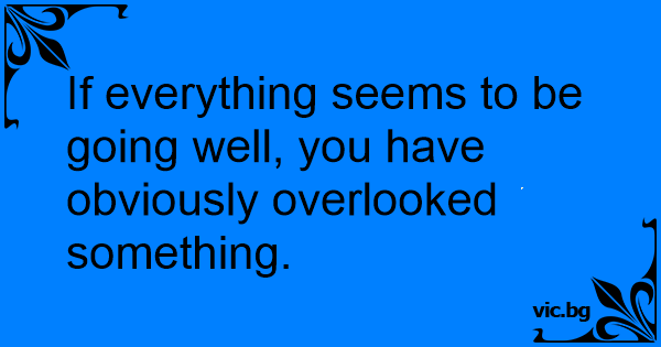 If everything seems to be going well, you have obviously overlooked something.