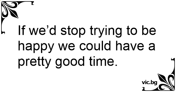 If we’d stop trying to be happy we could have a pretty good time.