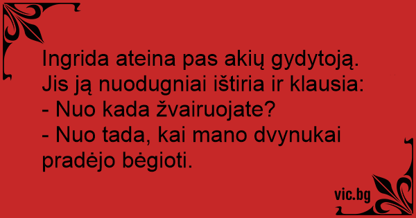 Ingrida ateina pas akių gydytoją. Jis ją nuodugniai ištiria ir klausia: