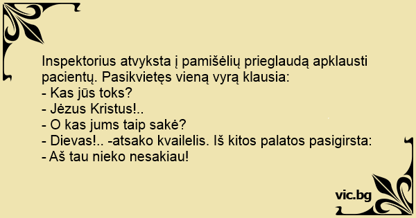 - Dievas!.. -atsako kvailelis. Iš kitos palatos pasigirsta: