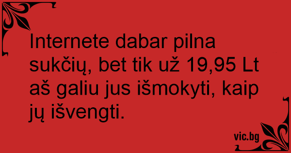 Internete dabar pilna sukčių, bet tik už 19,95 Lt aš galiu jus išmokyti, kaip jų išvengti.