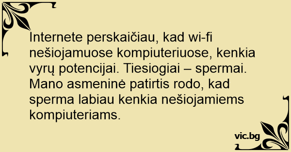 Internete perskaičiau, kad wi-fi nešiojamuose kompiuteriuose, kenkia vyrų potencijai. Tiesiogiai – spermai.