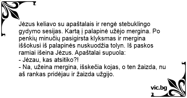- Na, užeina mergina, išskečia kojas, o ten žaizda, nu aš rankas pridėjau ir žaizda užgijo.