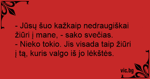 - Nieko tokio. Jis visada taip žiūri į tą, kuris valgo iš jo lėkštės.