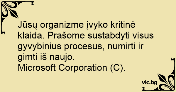 Jūsų organizme įvyko kritinė klaida. Prašome sustabdyti visus gyvybinius procesus, numirti ir gimti iš naujo.