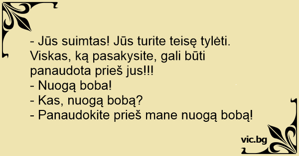 - Jūs suimtas! Jūs turite teisę tylėti. Viskas, ką pasakysite, gali būti panaudota prieš jus!!!