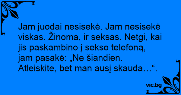 Jam juodai nesisekė. Jam nesisekė viskas. Žinoma, ir seksas. Netgi, kai jis paskambino į sekso telefoną, jam pasakė: „Ne šiandien. Atleiskite, bet man ausį skauda…“.