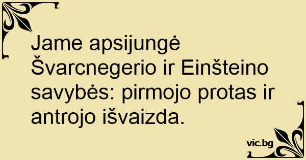 Jame apsijungė Švarcnegerio ir Einšteino savybės: pirmojo protas ir antrojo išvaizda.