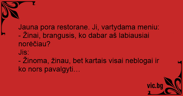 - Žinoma, žinau, bet kartais visai neblogai ir ko nors pavalgyti…