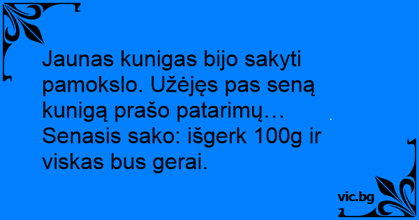 Senasis sako: išgerk 100g ir viskas bus gerai.