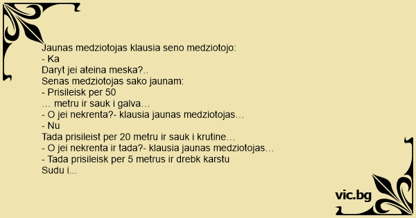 - O jei nekrenta?- klausia jaunas medziotojas…