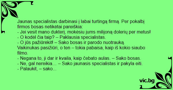 Jaunas specialistas darbinasi į labai turtingą firmą. Per pokalbį firmos bosas netikėtai pareiškia: