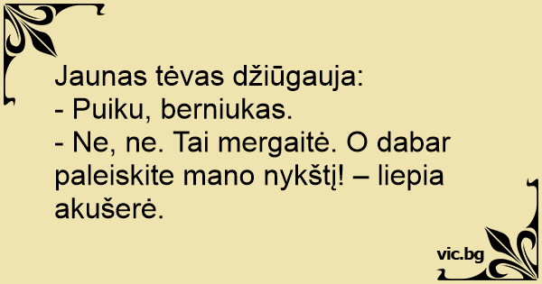 - Ne, ne. Tai mergaitė. O dabar paleiskite mano nykštį! – liepia akušerė.