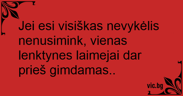 Jei esi visiškas nevykėlis nenusimink, vienas lenktynes laimejai dar prieš gimdamas..