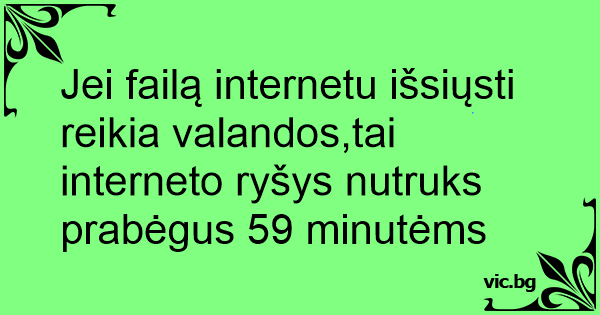 Jei failą internetu išsiųsti reikia valandos,tai interneto ryšys nutruks prabėgus 59 minutėms
