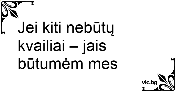Jei kiti nebūtų kvailiai – jais būtumėm mes